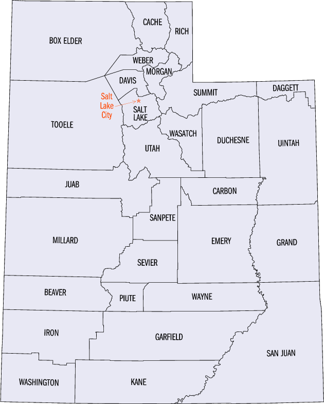 Alta, Bluffdale, Brighton, Copperton, Cottonwood Heights, Draper, Emigration Canyon, Herriman, Holladay, Kearns, Magna, Midvale, Millcreek, Murray, Riverton, Salt Lake City, Sandy, South Jordan, South Salt Lake, Taylorsville, West Jordan, West Valley City, White City